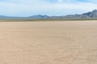 This image captures an open space in the middle of a desert in the USA. The dirt covered field stretches out into the distance, with sand covering the surface. A white horse stands majestically on top of the field, contrasting against the clear blue sky and fluffy clouds. This scene represents a peaceful day in the desert, where the horse stands as a symbol of freedom and strength. The vastness of the desert and the open space contribute to a sense of tranquility and solitude.