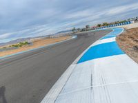 A race track in the USA, with smooth asphalt curving through the landscape. Clear day with clouds overhead sets the stage for thrilling racing action.