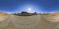 this is a 360 - vision photograph of a desert landscape in winter time taken using the fisheye lens