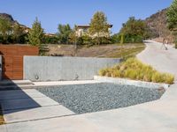 This is an image of a modern residential house in Los Angeles, California. The house features contemporary architecture with clean lines and a concrete surface. It is situated in a rural area under a clear sky, providing a peaceful and serene atmosphere. This photo showcases the beauty of modern architecture in a residential setting in the heart of California.