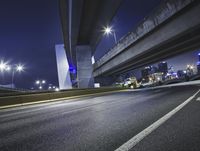 An illuminated cityscape at night in Los Angeles, California. The modern architecture and skyscrapers create a stunning skyline. Road markings and street lights guide transportation in this urban metropolis.