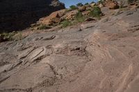 This captivating stock photo captures the rugged beauty of Utah's Canyonlands, located in the western part of the USA. The stunning red rock formations, towering mountains, and vast open spaces dominate the landscape, creating a breathtaking view. The image depicts a day scene with clear skies, allowing the natural beauty of the terrain to shine through. The rocky outcrops and bedrock formations showcase the unique geological features of the area, sculpted over time by erosion. Vegetation is sparse, with trees scattered sporadically across the photo. The off-road track carved into the rugged terrain adds a sense of adventure and recreational possibilities. The Moab Rim in the background completes the picturesque scene. This image is perfect for nature enthusiasts, outdoor recreation enthusiasts, or anyone looking to add a touch of Utah's natural wonders to their project.