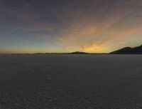 This image captures the serene beauty of the Utah desert at dawn. The landscape consists of sandy dunes stretching out towards the mountains in the distance. The calm, clear sky reflects shades of orange as the sun rises, casting a warm glow over the scene. The surface of the nearby salt lake glistens under the morning sunlight. In the atmosphere, contrails from airplanes create delicate lines against the sky. This photograph evokes a sense of peacefulness and tranquility, perfect for nature enthusiasts and those seeking emotional connection with the natural world.