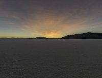 A serene landscape in Utah at dawn. The dark sky gradually transitions into a clear and calm atmosphere. The mountains stand tall against the desert and the surface of the salt lake, creating an emotional and peaceful scene.