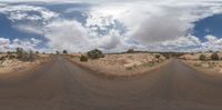 a view of a very empty dirt road, in front of a cloudy sky with some clouds