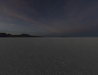 A serene landscape at dawn in Utah. The dark sky and clear atmosphere create a calm and emotional atmosphere. The mountains and desert meet the calm surface of the salt lake. Contrails streak across the black horizon.
