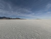 This stock photo showcases the beauty of the Utah desert at dawn. The open desert landscape features vast stretches of sand and plains, with the magnificent mountains in the background. The clear blue sky, calm atmosphere, and dry surface create a serene and tranquil natural environment. A salt lake can be seen on the horizon, reflecting the peaceful surroundings. Contrails streak across the sky, adding an emotional element to the scene. This stunning image captures the untouched beauty of Utah's natural landscape.