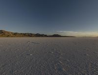 a vast desert with no people or clouds in it, including mountains and blue skies