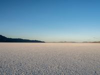 A breathtaking view of the Bonneville Speedway in Utah at dawn. The open space of the desert landscape meets the clear sky over the salt surface. Majestic mountains frame the scene, showcasing the natural beauty of Salt Lake City.
