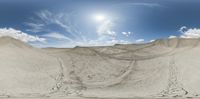 Sunny day in Utah's desert landscape. A river cuts through the rocky surface, surrounded by greenery and open spaces. Gravel and dirt areas contrast with the clear blue sky, creating a serene natural scene.