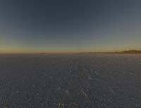 a plane flying through the sky on a plain with desert landscape in the background at sunset