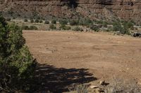 a small tree stands in an open plain with some mountains behind it and dirt ground