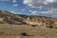 An open space in the Utah desert with red rocks, mountains, and grass. The rugged terrain of San Rafael Swell features canyons, slopes, and rock formations. A perfect off-road track for nature lovers.