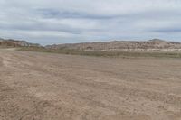 This image captures the rugged terrain of the San Rafael Swell in Utah, USA. The desert landscape features red rock formations, open plains, and sandy hills. The gloomy grey sky adds to the dramatic atmosphere of this remote location. The dirt roads and off-road tracks provide access to explore the unique geology and canyons of this area. The field of brown and beige terrain is a testament to the natural beauty of the Goblin Valley. This photo showcases the untouched and raw nature of the Utah desert.