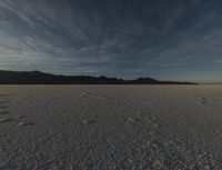 a wide open plain with a mountain in the background and some clouds above it in the distance