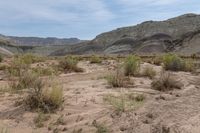 This is an image of a desert landscape in Utah, USA. The rugged terrain features red rock formations, mountains, and canyons. The sandy ground is covered with shrubs and sparse vegetation. A dirt road cuts through the plain, leading towards the Capitol Reef and San Rafael Swell. The sky is filled with clouds, creating a dramatic backdrop for the scene. This photo captures the natural beauty of the Utah desert, showcasing its unique geology and stunning landscapes.