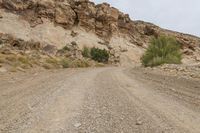 This is an image of a road in San Rafael Swell, Utah, USA. The road stretches straight through the desert landscape, surrounded by red rock formations, sand, and vegetation. The road surface is made of asphalt and gravel, providing a thoroughfare for off-road adventures. The brown and gloomy atmosphere is enhanced by the grey sky overhead. This photo captures the rugged beauty of the canyonlands in Utah. It portrays the vastness and serenity of nature in San Rafael Swell.