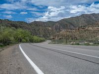 A road stretching through the majestic mountains of Utah, surrounded by clear skies and fluffy clouds. The smooth asphalt contrasts with the rugged terrain. A perfect day for a drive in the USA.