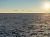 A packshot of a landscape in Salt Lake City, Utah. The clear sky at dawn reveals the dark silhouette of mountains and the salt lake. Nature's beauty under the early morning sun in an open space.