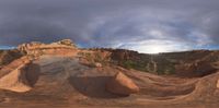 Utah's open landscape at dawn, with hard shadows cast on rocky surfaces. The sun visible, breaking the dark night with sunshine and clear skies. A nature scene in the USA with contrasting light and shadow.