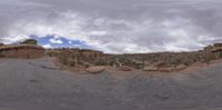 Utah's open landscape featuring rocky surfaces, dirt, gravel, and sand. Clear skies highlight the natural beauty of the USA. Daytime scene with vast open spaces and cloud-filled horizons.
