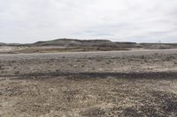 A picturesque off-road track in the rugged landscape of San Rafael Swell, Utah. The red rock canyonlands and sandy desert create a stunning natural backdrop. Grey sky adds a touch of drama to the scene.