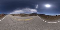 a highway with white markings is shown through two distorted images of the image, both above a very dark sky