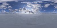 3d snow scene of the sun over the snowy fields of an icy mountaintop with mountains and clouds