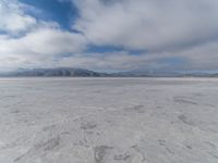 Scenic landscape of Salt Lake in Utah, showcasing the vast open space and mountainous desert scenery. Clear day with clouds casting shadows on the salt-covered ground. A serene and natural packshot of Salt Lake City.