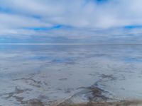 Beautiful Salt Lake landscape in Utah, showcasing the desert mountains under a sunny, cloud-filled sky. Open space with salt visible. Nature at its finest in Salt Lake City.