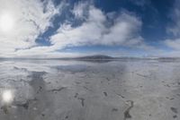 Vast open space in Utah, featuring salt lakes with mountainous desert landscape. Clear sunny day with visible sun and clouds. A nature packshot capturing the essence of Salt Lake City.