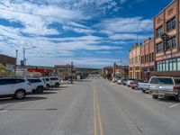 A straight road cutting through the rural landscape of Utah. Lined with classic architecture, it leads to the heart of a small town. Clouds dot the sky on a clear day.