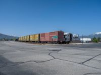 A beautiful landscape in Utah, USA. The road stretches into the distance, surrounded by mountains and clear skies. The asphalt reflects the sunlight, adding to the picturesque scenery.