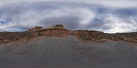 Vast open space in Utah, USA, showcasing nature's beauty. Rocky surfaces merge with dirt, gravel, and sand. Cloud-filled sky illuminates the landscape on a sunny day.