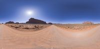 Open space in Utah, USA, showcasing a clear sky and the sun visible in the landscape. Gravel and dirt surfaces harmonize with rocky areas under the sunny sky. Nature's beauty in the vast Utah landscape.