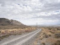 A rugged dirt road in the wilderness of Utah. Surrounded by endless plains and mountains, this off-road track is perfect for nature lovers seeking adventure. The grey sky adds to the mystique of this endless road.
