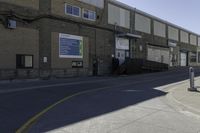 This stock photo showcases a brick building with windows and an overhead sign that reads 'the building is vacant'. Located in Toronto, Canada, in a residential area, this property highlights the urban design and architectural features of the neighborhood. The clear sky and the low-rise structures surrounding the building contribute to the suburban feel. The brick facade, along with the office building and warehouse nearby, adds to the industrial character of the area. The asphalt road surface in front of the building completes the urban landscape.