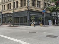 A sunny day in downtown Los Angeles, California. Classic architecture lines the streets, while trees and vegetation provide shade. Urban design blends with the city's vibrant restaurant scene.
