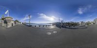 Elevated view of a coastal road in Wellington, New Zealand. A bridge spans over a picturesque lake, offering a straight down the road perspective. Cloudy day creates a moody atmosphere. Nearby restaurants provide a chance to eat out and enjoy the ocean view.