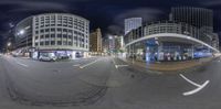 A captivating night view of Wellington, New Zealand's bustling city center. The image showcases the city's urban design with straight roads, office buildings, storefronts, and traffic lights. Artificial lights illuminate the streets, creating a vibrant and energetic cityscape.