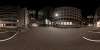 A bustling business district in the heart of Wellington, New Zealand. Modern architecture and street lights illuminate the dark night. Open spaces and office buildings create an urban atmosphere.