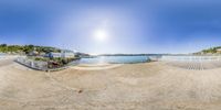 A sunny day in Wellington, New Zealand. Beaches lined with buildings and calm waters offer a peaceful coastal experience. A boy stands on the shore with a surfboard, enjoying the clear sky and sound of the ocean.