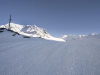 This is a picturesque image of a skier skiing down a ski slope in the snow on a sunny day. In the background, a majestic mountain stands tall and proud, showcasing the beauty of the natural landscape. The snowy slope surrounded by the stunning mountain range creates the perfect setting for winter sports and adventure. This image captures the essence of winter tourism in the Alps of France, offering tourists the opportunity to experience the thrill of skiing in a breathtaking environment. Get ready to explore the European Alps and enjoy the pristine slopes and clear skies.