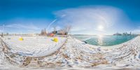 Winter Scene in Toronto: Snow-Covered Beach and Frozen Lake