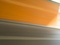 This image captures the vibrant city life in Berlin, Germany. The modern architecture and urban design are showcased in the multicolored buildings and patterned roads. The image features a tunnel with a motion blur effect, adding a sense of movement to the scene. The color palette includes shades of orange, peach, and amber, which create a warm and inviting atmosphere. The hardwood pavement and the wood stain on the road add an interesting texture to the composition. This photo represents the lively and dynamic atmosphere of Berlin.