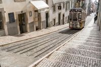 Yellow Tram in Lisbon, Portugal - Classic Architecture and Cobblestone Streets