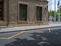 the side walk and walkway of a building is marked with markings for parking spaces below