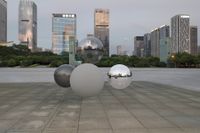 This 3D scene captures a sleek urban plaza located in Shenzhen, China. The scene features a vast expanse of paving stones extending under a tranquil, overcast sky, complemented by the glow of dawn. The reflection of the modern and futuristic architecture of Shenzhen’s skyline is visible in the mirrored spheres present in the scene, enhancing the visual appeal and providing realism to renders. The artificial street lighting and subtle cloud cover create a soft, diffused light that envelops the plaza, perfect for automotive designers aiming to showcase vehicles with elegant reflections and soft shadows. This urban setting, imbued with a sense of modernity and future-forward design, serves as an ideal backdrop for sophisticated vehicle renders and product visualizations, offering artists an array of lighting dynamics to work with.