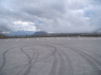 An Armco guard rail protecting a parking lot from a scenic mountain landscape in Austria, Europe on a sunny day.