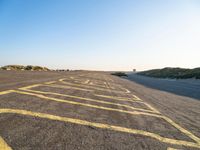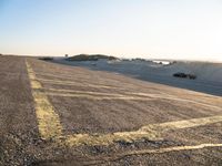 An elevated view of the Netherlands reveals a variety of aeolian landforms, including beaches, dunes, and sand plains, all illuminated by the warm rays of a dawn sky. The coastal biome is a mix of asphalt roads, metal fencing, and tree-dotted grasslands, with the azure ocean visible in the horizon.